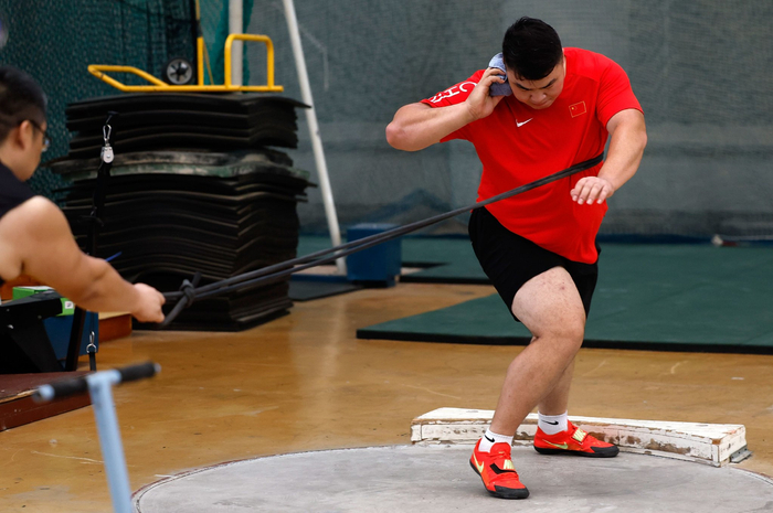 8月29日,中国男子铅球选手邢家梁在北京备战东京世锦赛。新华社记者 王丽莉 摄